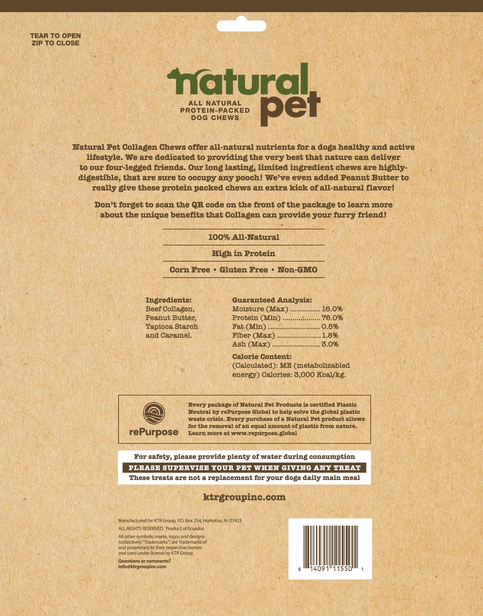 Natural Pet Collagen Chews offer all-natural nutrients for a dogs healthy and active lifestyle. We are dedicated to providing the very best that nature can deliver to our four-legged friends. Our long lasting, limited ingredient chews are highly digestible, that are sure to occupy any pooch! We’ve even added Peanut Butter to really give these protein packed Chews an extra kick of all-natural flavor! These chews are high in protein, non-GMO, and are gluten and corn free!