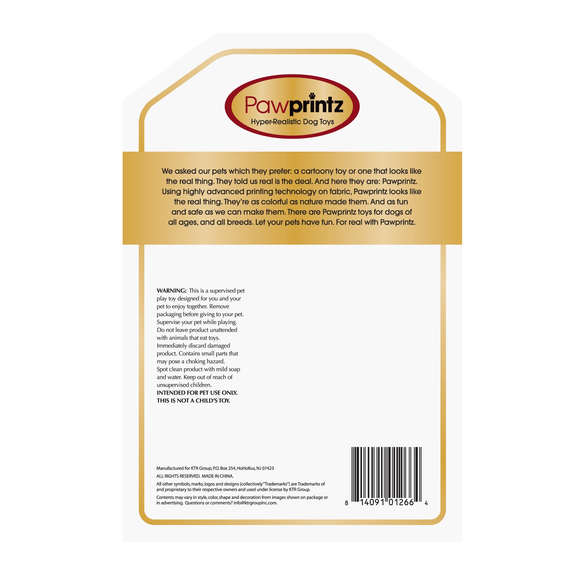 We asked our pets which they prefer: a cartoony toy or one that looks like the real thing. They told us real is the deal. And here they are: Pawprintz. Using highly advanced printing technology on fabric, Pawprintz looks like the real thing. They're as colorful as nature made them. And as fun, durable and safe as we can make them. There are Pawprintz toys for dogs of all ages, and all breeds. Let your pets have fun. For real with Pawprintz.